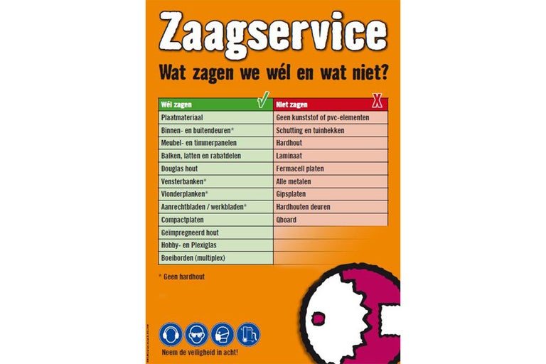 | tot 10 zaagsneden per klant | gratis |