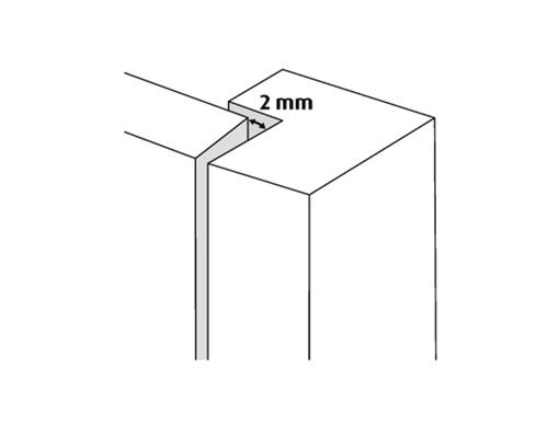 Aan de bovenzijde een speling van 2 mm