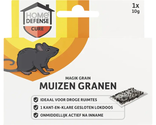 Heb je last van huismuizen in droge ruimtes zoals de zolder, vloeren, plafonds of een garage? HOME DEFENSE Magik Grain is een aantrekkelijk en effectief lokaas voor het bestrijden van dit soort muizen. Eénmalige consumptie is dodelijk voor een muis. Dit maakt het product eveneens geschikt voor de bestrijding van een grote muizenplaag.