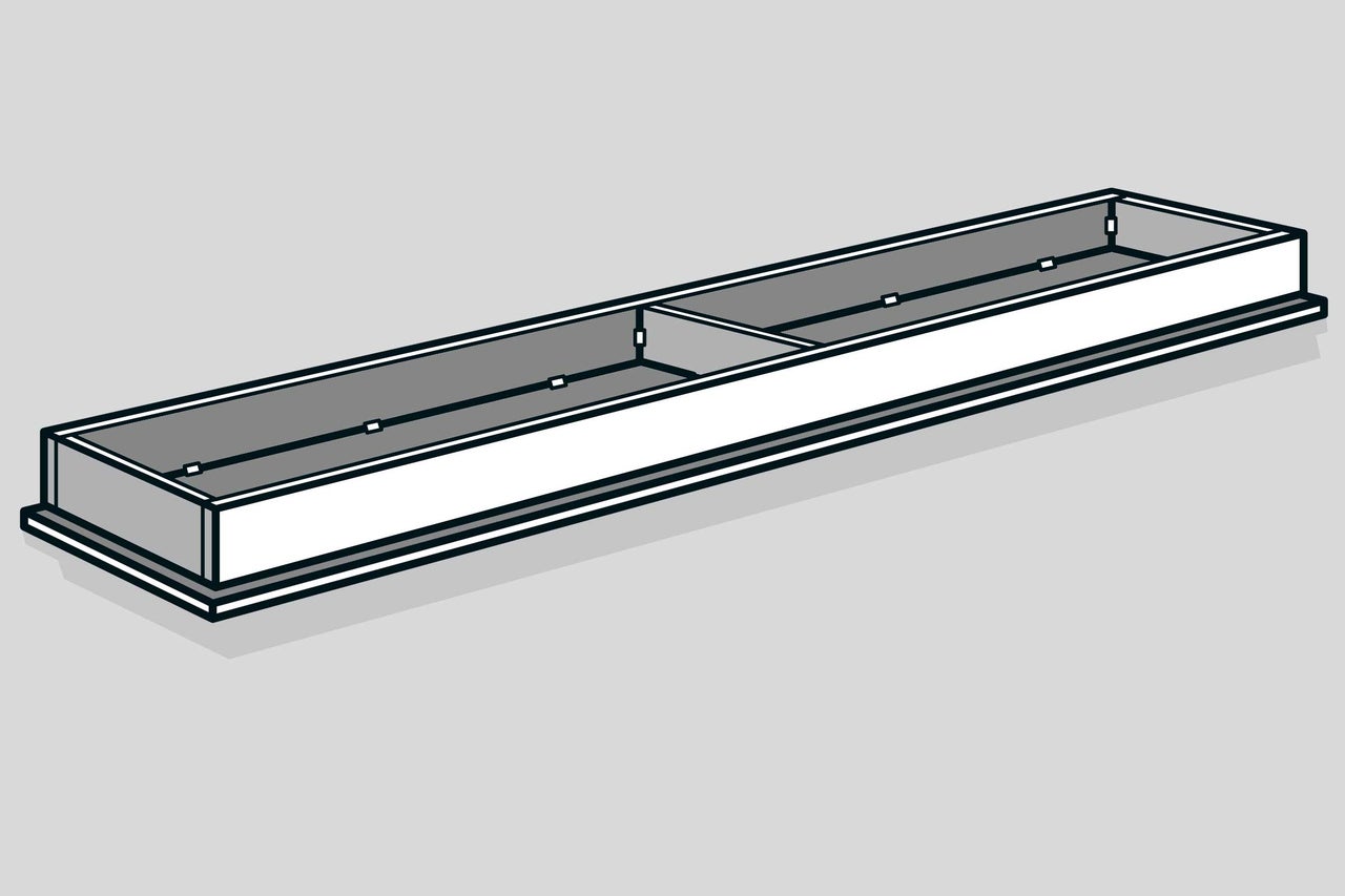 Leg het onderkantframe op de bodemplaat en lijn het zo uit dat de randen van de bodemplaat overal even ver uitsteken. Klopt alles? Mooi. Schroef het frame aan de binnenkant vast aan de bodemplaat met universele verbindingsstukken. Zo staat het stevig en precies waar jij het hebben wilt.