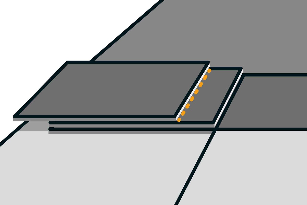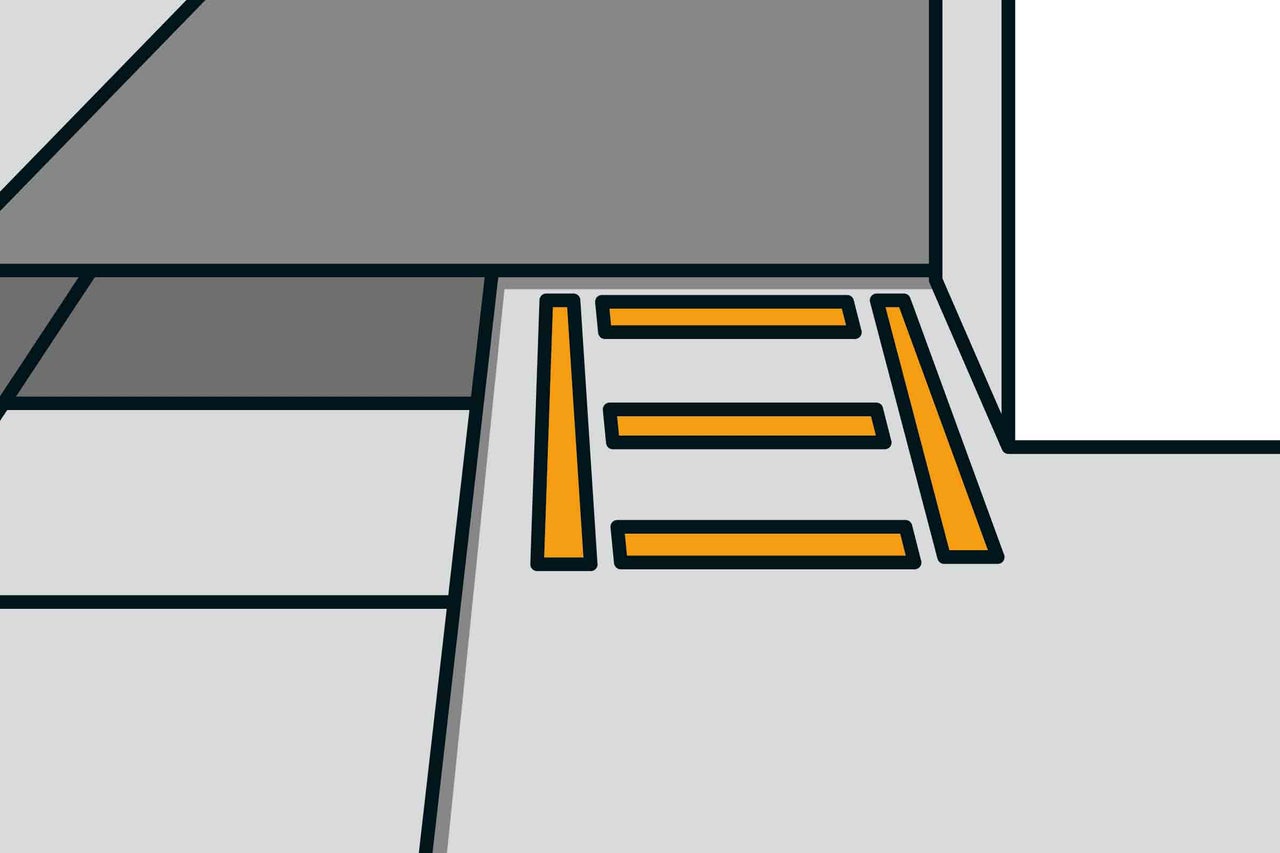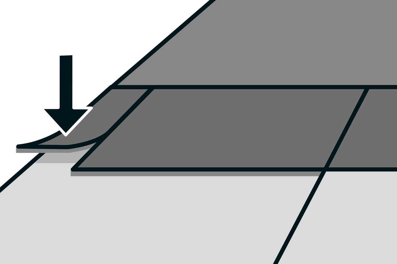 Begin met het vastlijmen van de eerste rij tapijttegels met tapijttape. Die mag absoluut niet verschuiven, want alle volgende tegels worden er strak tegenaan gelegd. De rest van de tapijttegels zijn meestal zelfleggend en hoeven niet vastgelijmd te worden. Let bij het leggen goed op de poolrichting: die wordt aangegeven met een pijl op de achterkant van elke tegel. Zo blijft het geheel mooi egaal en consistent.
