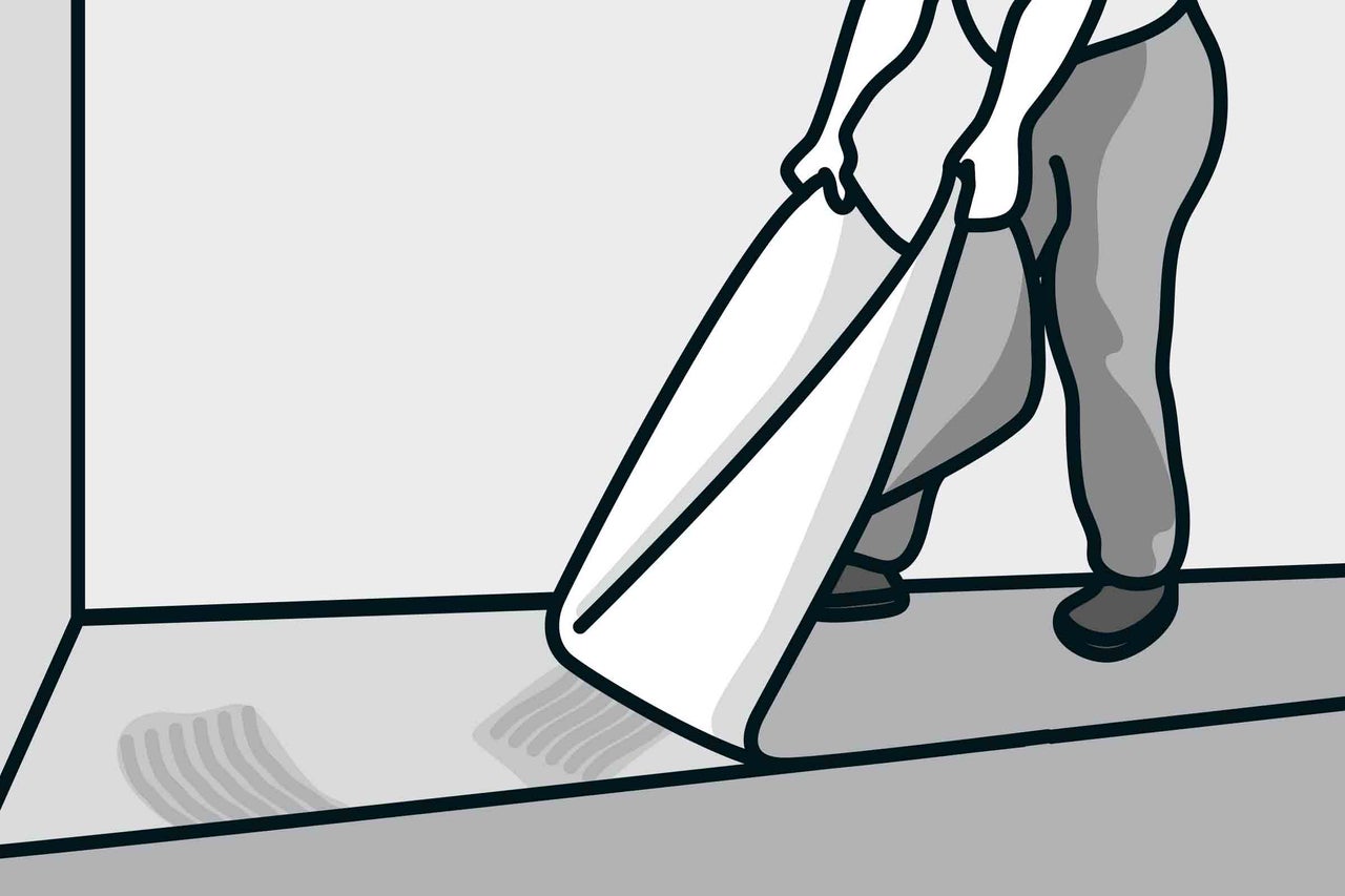 Voor je begint met het leggen van tapijttegels, moet de ondervloer schoon en vlak zijn. Controleer met een waterpas of er geen grote oneffenheden zijn. Een lichte helling is niet erg, maar alles wat dieper is dan 2 mm kan zichtbaar blijven onder je nieuwe vloer. Repareer daarom kuilen en scheuren groter dan 2 mm: breng eerst een diepe primer aan op de beschadigde plekken en vul ze na droging op met een reparatievuller.