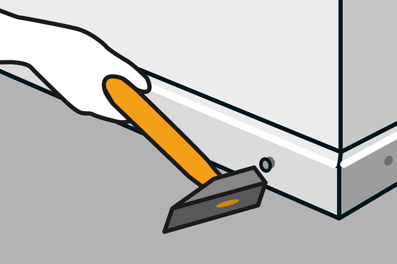 Verwijder eerst de oude plinten. Zijn die vastgelijmd? Dan kan de verf of het behang erboven scheuren. Om dat te voorkomen, snijd je met een stanleymes voorzichtig langs de bovenrand van de plint. Gebruik daarna een stevige beitel om de plint los te wrikken. Zodra hij los is, haal je de spijkers eruit, zo voorkom je vervelende verwondingen.